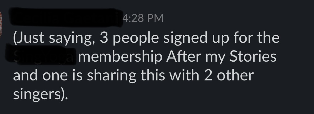- She just sold her first membership spot entirely via stories and strategic highlights.